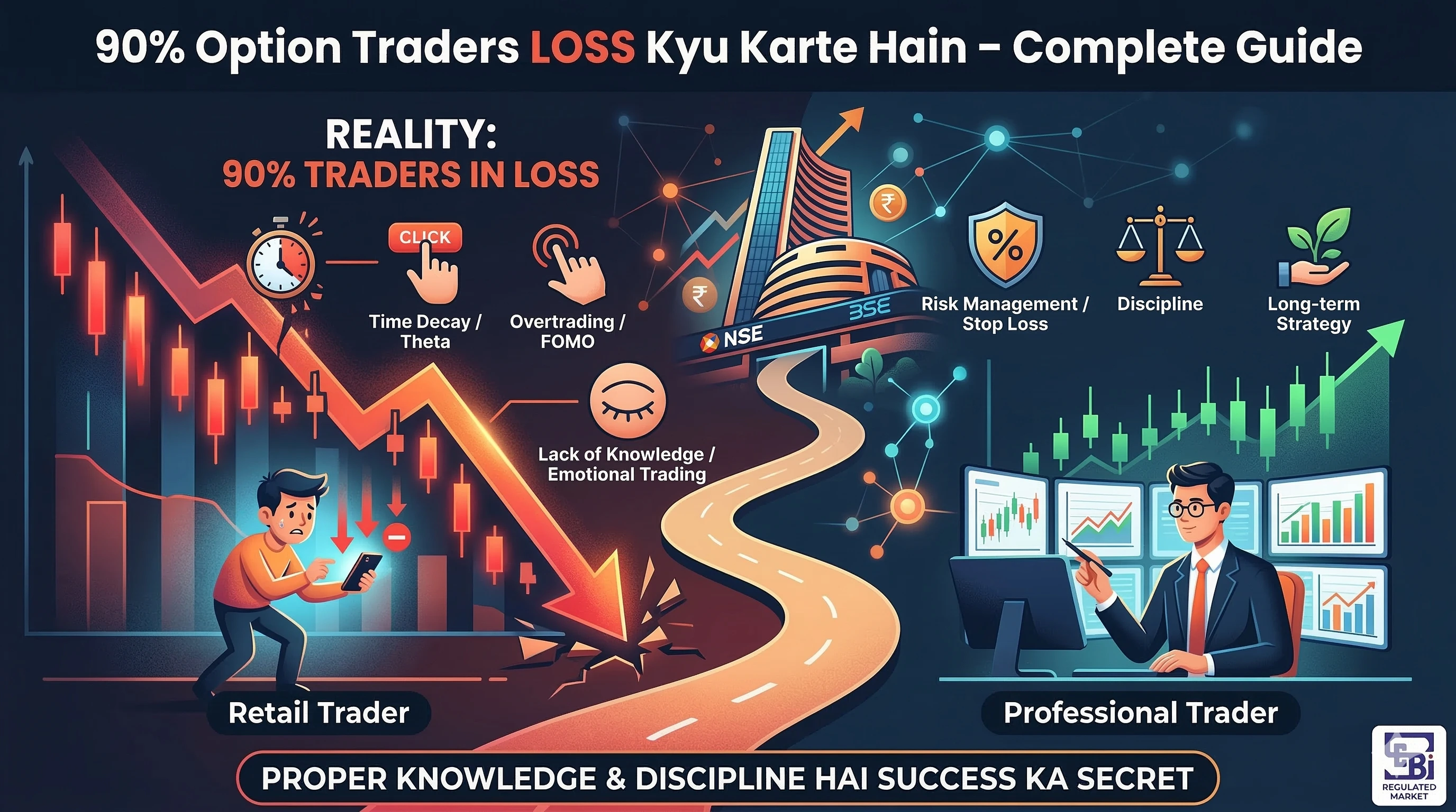 Option trading me majority retail traders loss karte hain. Is guide me janiye beginners ki common mistakes, risk management strategies aur kaise disciplined trading se losses avoid kiye ja sakte hain.